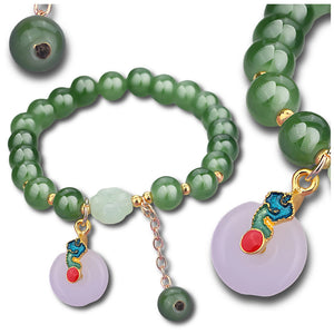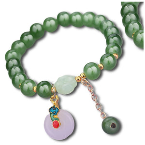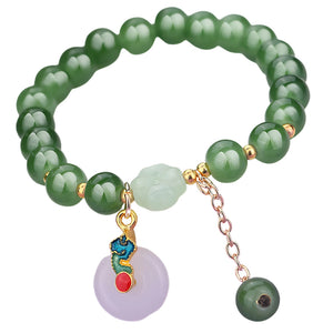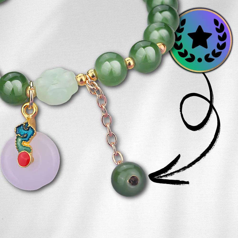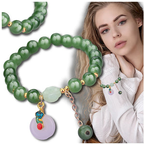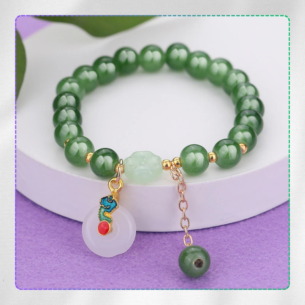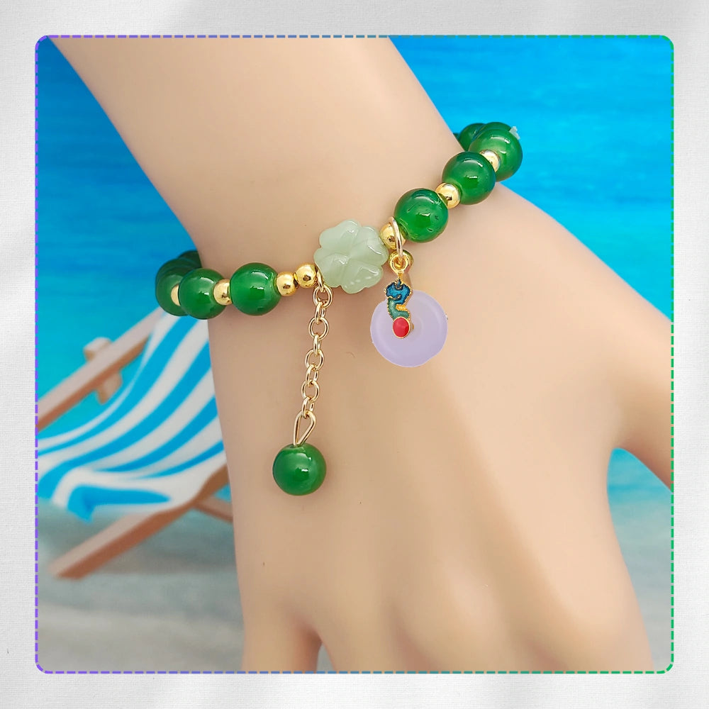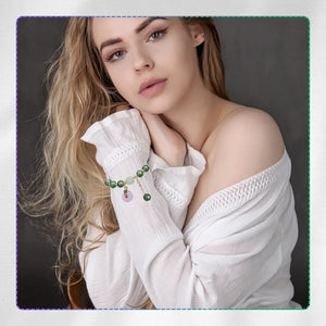Zaļa rokassprādze ar pērlītēm un kulonu