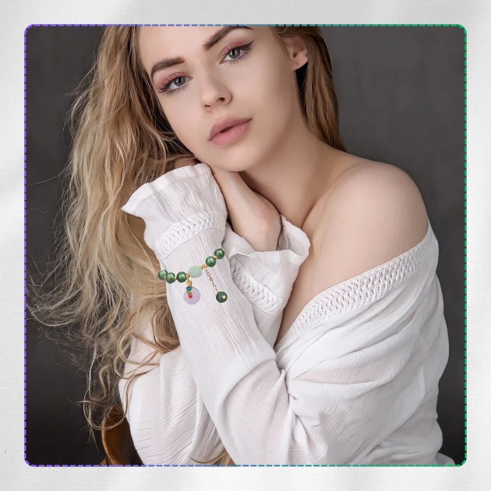 Aproce ar elastīgu joslu, universāla izmēra, viegli pielāgojama jebkurai plaukstas locītavai. Tā ir lieliska izvēle tiem, kas novērtē komfortu un modi vienlaikus. Zaļā aproce labi sader ar dažādiem tērpiem, piešķirot tiem svaigumu un dabisku mirdzumu.