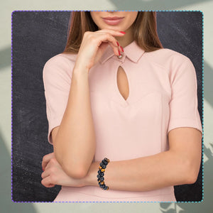 Iepazīstieties ar jauno pērlīšu rokassprādzi, kas izgatavota no dabīgiem akmeņiem - tīģera acs un vulkāniskā ieža. Šis unikālais, roku darbs aksesuārs apvieno eleganci ar dabas spēku, padarot to par ideālu izvēli gan sievietēm, gan vīriešiem. Aproce ir ne tikai stilīga, bet arī pilna ar simbolisku nozīmi. Tā tiek uzskatīta par veiksmes talismanu, kas var palīdzēt īpašniekam piesaistīt labklājību, drosmi un aizsardzību.