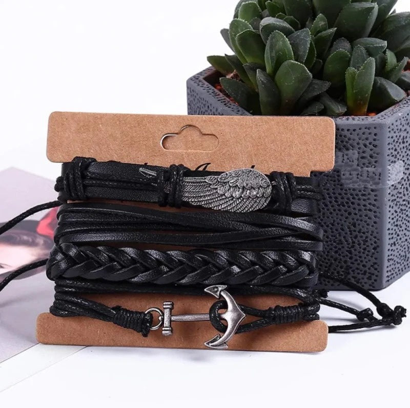 Šim ādas aproču komplektam ir eleganta melna krāsa, kas piešķir ekskluzivitāti un oriģinalitāti. Katra aproce ir roku darbs, padarot katru gabalu unikālu.
