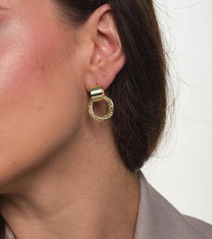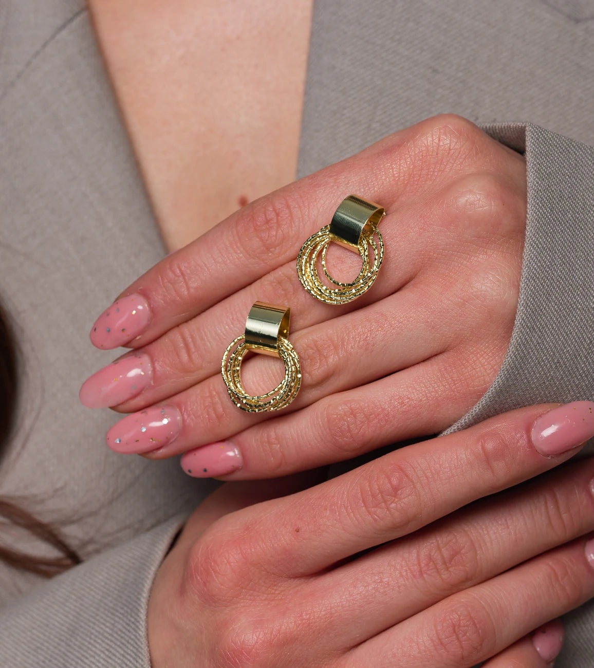 Atklājiet eleganci un mūžīgu stilu ar mūsu retro auskariem! Šie zelta auskari ir ideāla izvēle klasikas cienītājiem, kuri vēlas savam stilam piešķirt greznību un eleganci. Pateicoties unikālajam dizainam, šie metāla auskari ir lieliski piemēroti gan elegantām, vakarkleitām, gan ikdienas kombinācijām, piešķirot tiem retro šarmu.