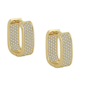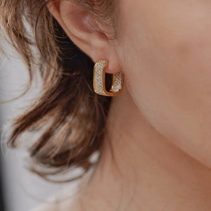 Šiem elegantajiem zelta toņa auskariem ir ģeometrisks dizains, ko akcentē mirdzoši cirkoni. Tie ir lieliski piemēroti gan ikdienas valkāšanai, gan īpašiem gadījumiem.