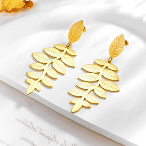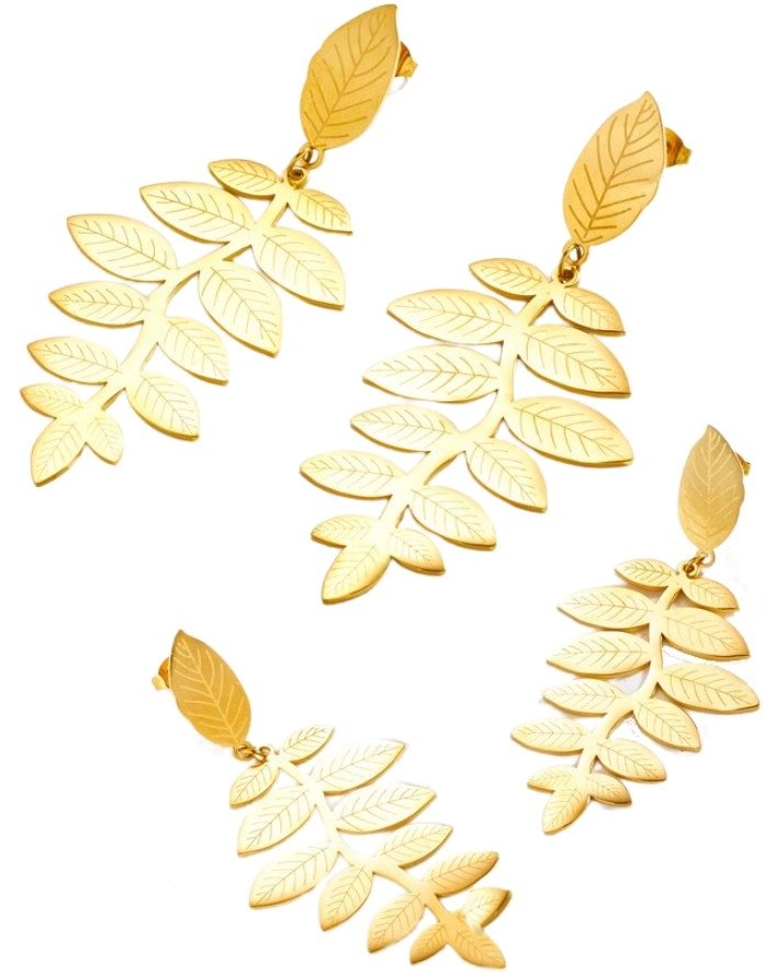 Eleganti un smalki sieviešu auskari, kas izgatavoti no augstas kvalitātes 316L ķirurģiskā tērauda. Šiem auskariem ir unikāls lapu dizains, kas piešķir tiem izsmalcinātību un stilu.