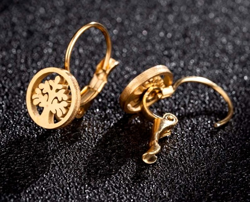 Šie elegantie auskari ir izgatavoti no augstas kvalitātes 316L ķirurģiskā tērauda, kas ir izturīgs pret rūsu un laikapstākļiem. Rotaslietas ir pārklātas ar 18 karātu zeltu, piešķirot tām greznu un modernu izskatu.