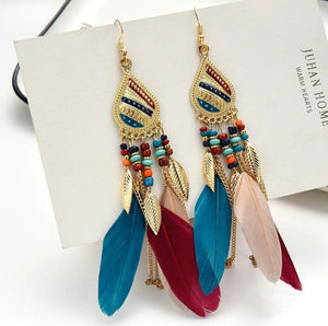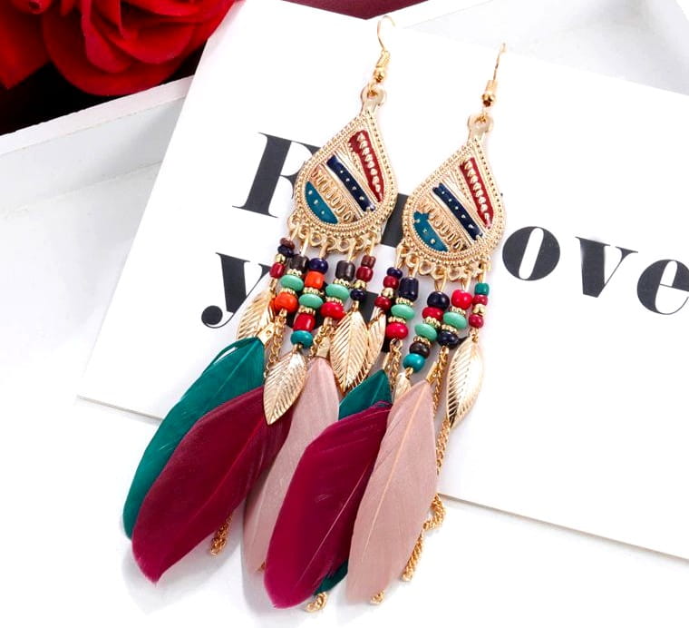 Šie garie karnevāla spalvu auskari ir lieliski piemēroti tiem, kas novērtē retro stilu. Nokarenie auskari ar garām spalvām piešķirs jūsu tēlam unikalitāti un eleganci.