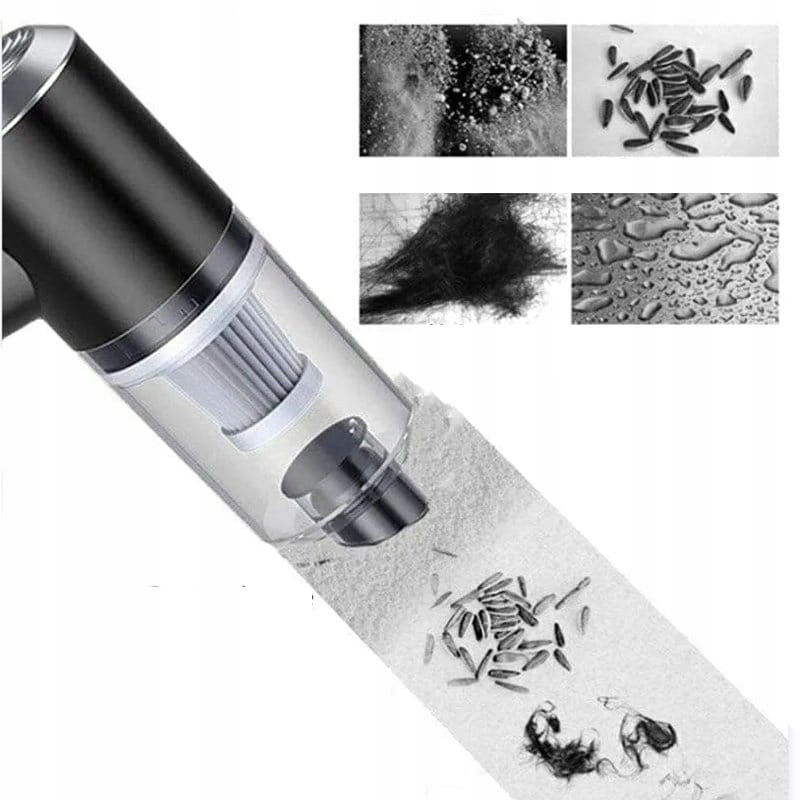 Neticami jaudīgs automašīnas putekļsūcējs, kas piemērots ne tikai lietošanai automašīnā. USB uzlāde ļauj pārvietot putekļsūcēju uz jebkuru vietu. Putekļsūcējs viegli tiek galā ar netīrumiem, piemēram, matiem, putekļiem, oļiem, smiltīm vai saulespuķu sēnalām. Viegli noņemamo filtru var tīrīt, žāvēt un atkārtoti izmantot jebkurā laikā. Ierīce ir kompakta un ietilpst automašīnas durvīs. Turklāt tai ir mini LED gaisma, kas apgaismo tīrāmo virsmu.