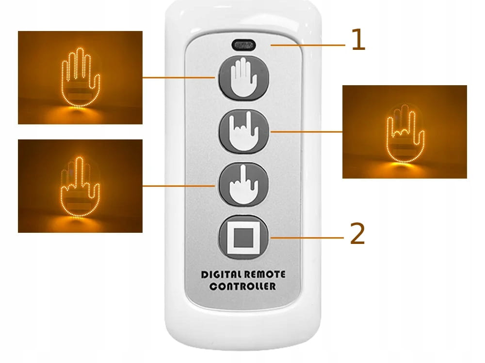 LED lampa ar žestu "Vidējais pirksts" automašīnai + Tālvadības pults - Ideāla ierīce!