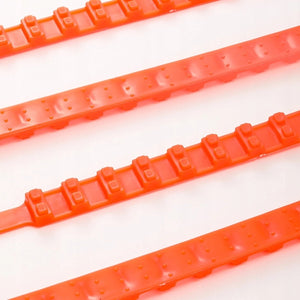 - Ātra uzstādīšana un noņemšana (tāpat kā klasiskās skavu sloksnes)