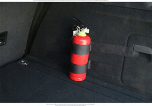 Ugunsdzēšamā aparāta stiprināšanas siksnas, šķidrumu turētājs bagāžniekā