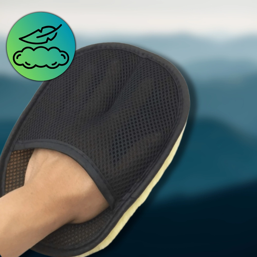 - Divpusējs dizains: Cimdam ir divas puses, kas ļauj efektīvāk tīrīt dažādas virsmas.