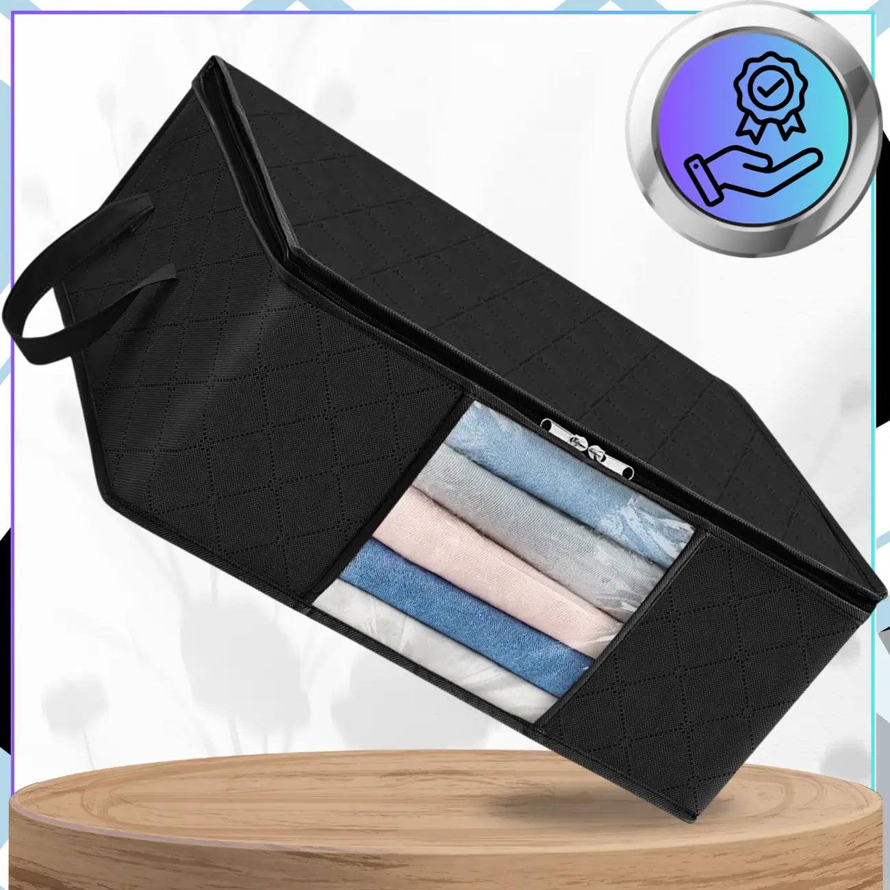 Šis trīsdaļīgais melnais organizatoru komplekts ir lielisks risinājums drēbju, gultasveļas un segu glabāšanai. Somas ir ietilpīgas un viegli lietojamas, tāpēc tās palīdzēs uzturēt kārtību mājās.