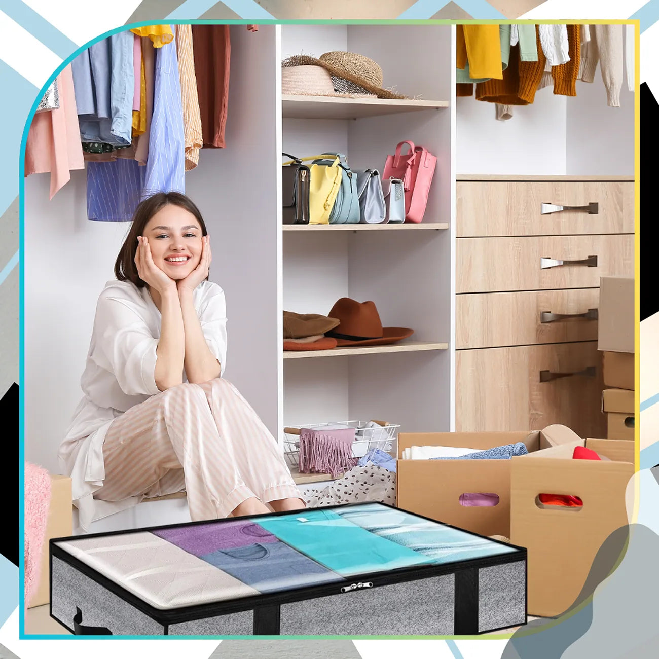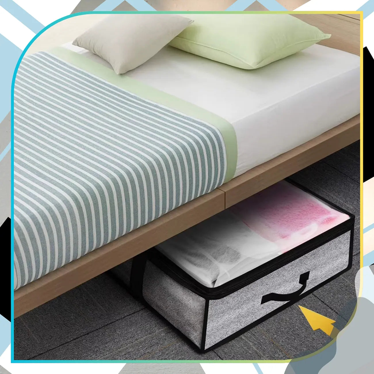 - Divdaļīgs organizatoru komplekts gultasveļas, drēbju un segu glabāšanai.