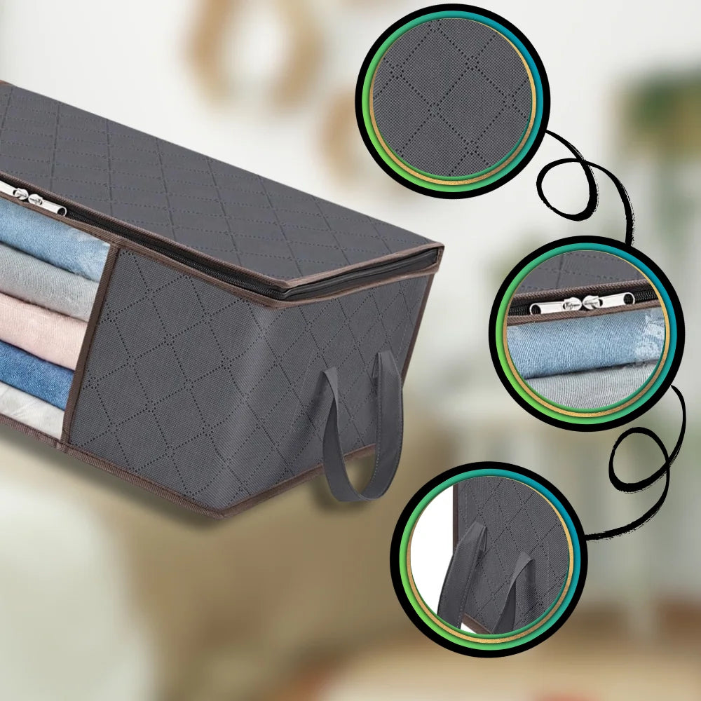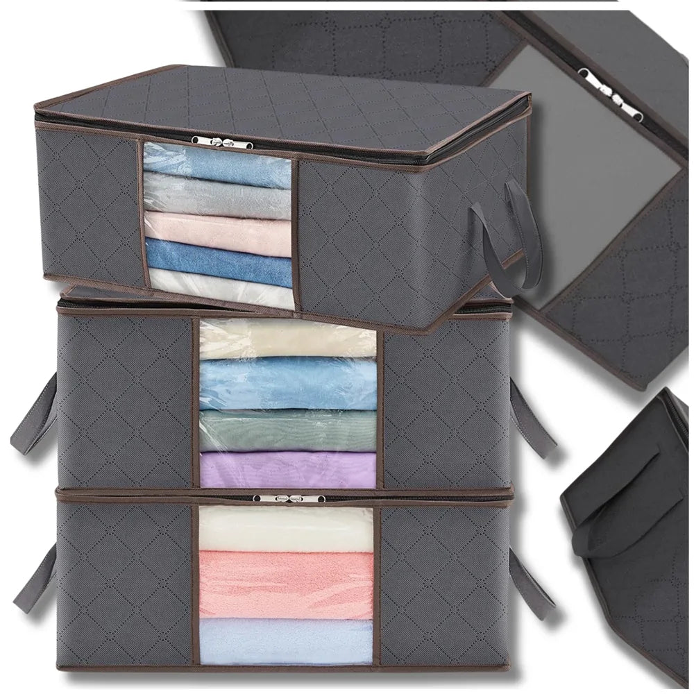 Šis trīs daļu organizatoru komplekts ir ideāls risinājums gultasveļas, drēbju un paklāju glītai glabāšanai. Paplātes pasargā no putekļiem, kodēm un netīrumiem, palīdzot uzturēt kārtību jūsu skapī vai pieliekamajā.