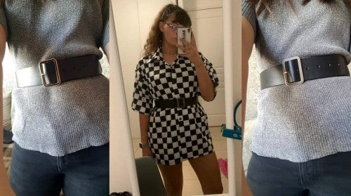 * Josta ar kvadrātveida metāla sprādzi, zelta krāsas ieliktni sprādzē, mīksta eko āda