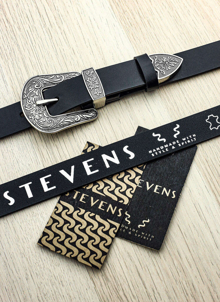 Sieviešu ādas josta Stevens Retro Vintage, melna