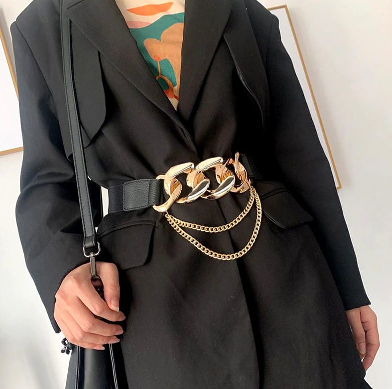 Šī elegantā sieviešu josta ir lielisks aksesuārs, kas piešķir stilu un funkcionalitāti. Tai ir metāla sprādze ar ķēdīti, kas piešķir tai izsmalcinātību un modernitāti.