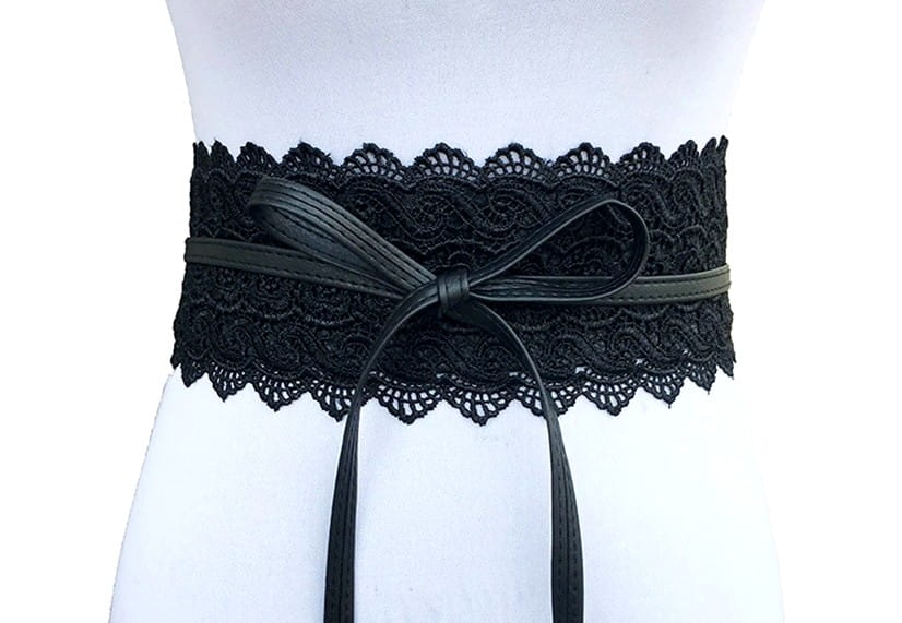 Šī elegantā josta ir izgatavota no mīkstas organiskās ādas un dekorēta ar smalkām mežģīnēm. Tā ir sasienama, tāpēc to ir viegli pieskaņot dažādām apģērba kombinācijām.