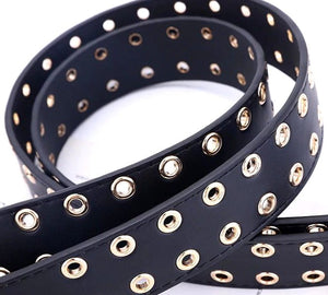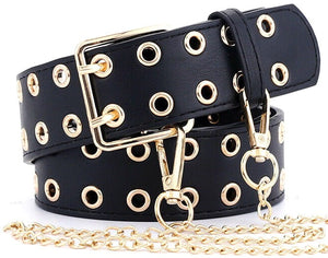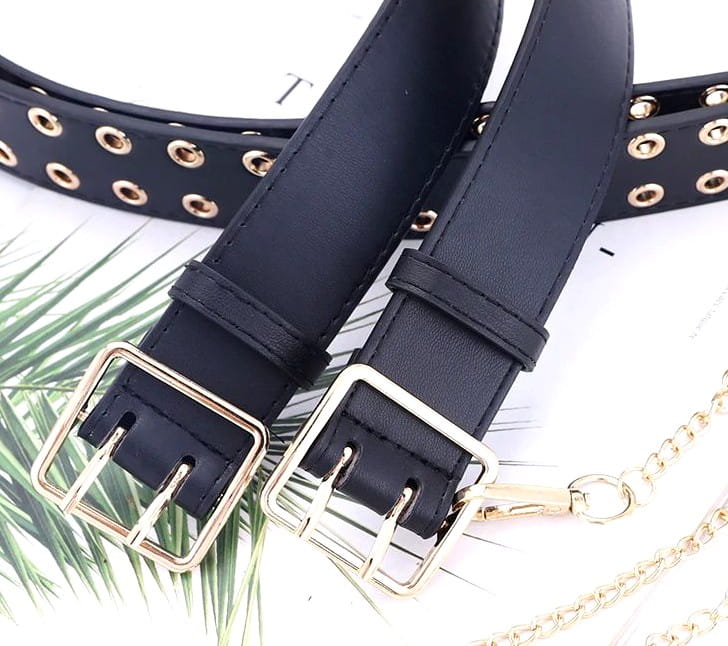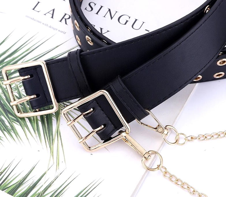 Sieviešu melna ādas josta ar zelta metāla ķēdīti