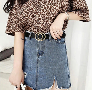 Sieviešu ādas josta ar dubultu sprādzi