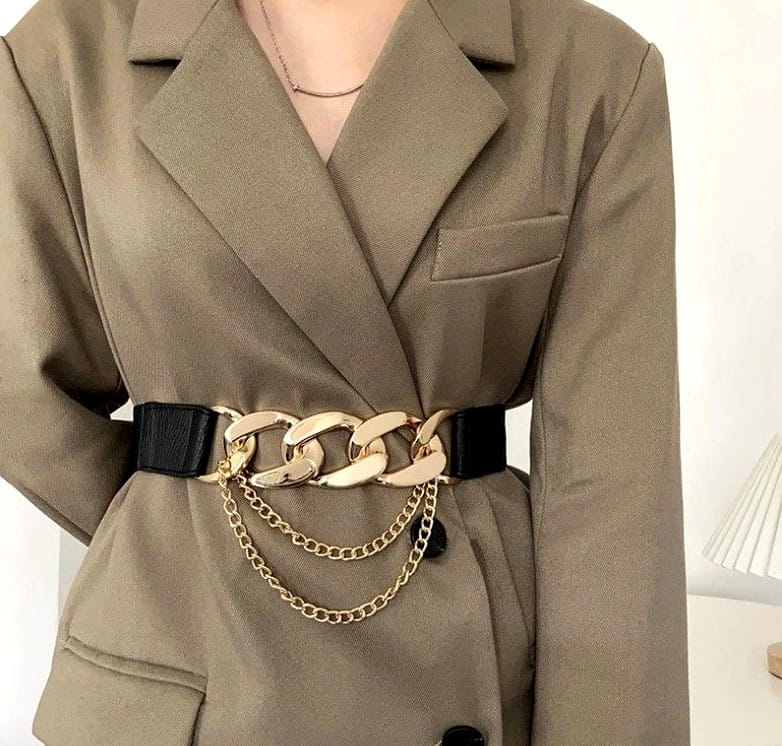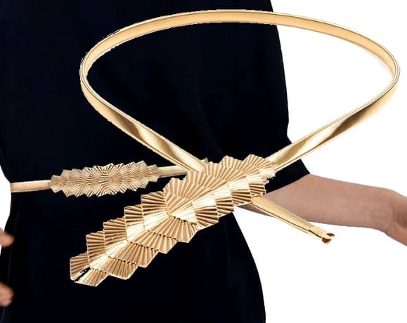 • Ķēdes tipa jostas: metāla vai ķēdes tipa jostas ar āķi; ideāli piemērotas vakartērpiem un modernām kleitām.