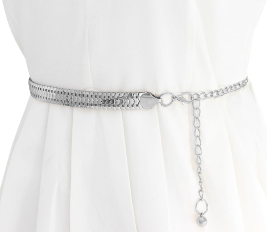 Kleitām un tunikām Plāna josta vai ķēdes siksna 2 cm plata dekoratīva sprādze (sirds, O formas), regulējams garums vai sprādzes āķis