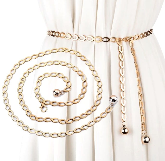 • Ķēdes tipa jostas: metāla vai ķēdes tipa jostas ar āķi; ideāli piemērotas vakartērpiem un modernām kleitām.