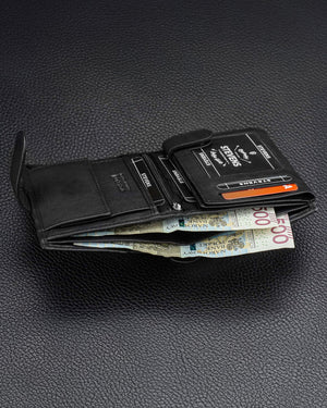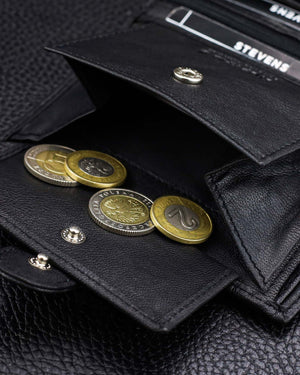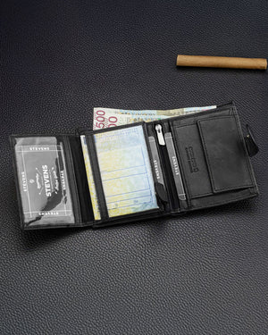 Elegants STEVENS® komplekts dāvanu kastītē. Dabīgās ādas maks un josta – klasika, kas piestāv jebkuram gadījumam.