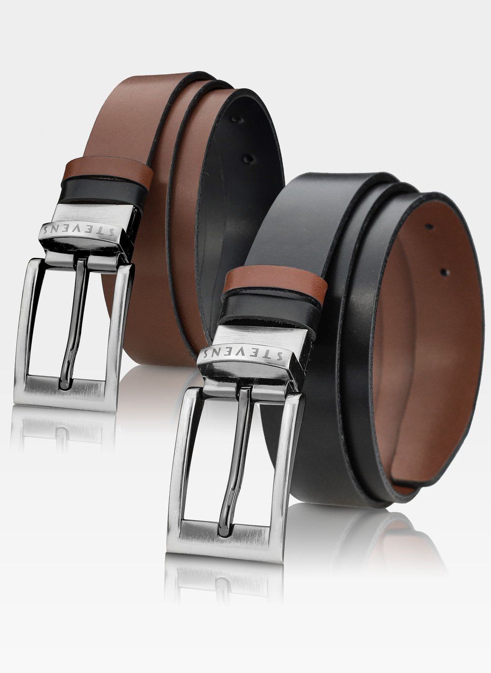 STEVENS® William divpusēja ādas josta ar rotējošu sprādzi