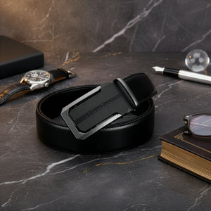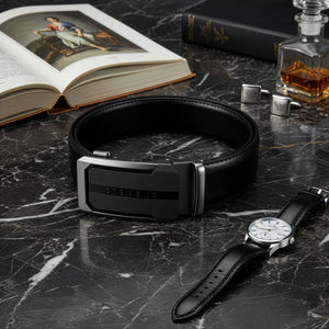 Vīriešu josta Stevens, dabīgā āda, melna, automātiskā sprādze 2501