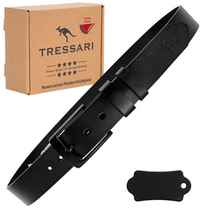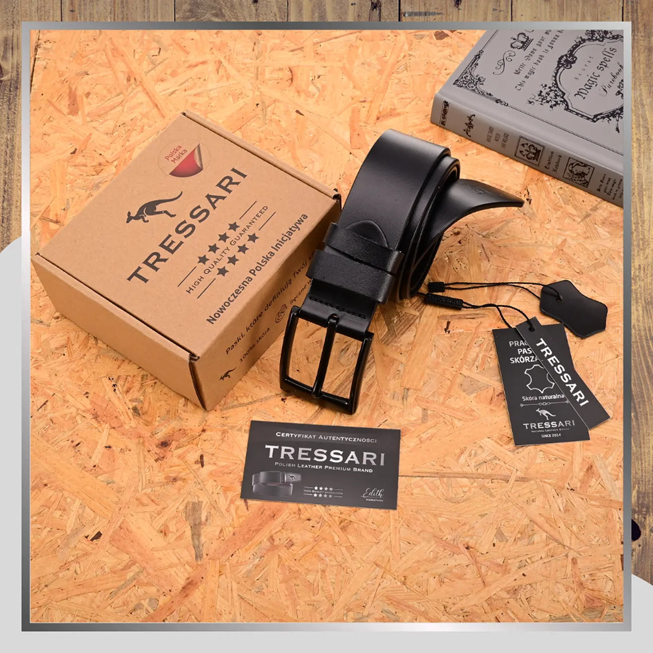 100% dabīgā āda (melna, 120 cm). TRESSARI ir Polijas premium zīmols, pazīstams ar rūpīgi izvēlētām materiālu kvalitātēm un uzmanību detaļām. Josta izgatavota no dabīgas liellopu ādas, kas ir izturīga pret bojājumiem un saglabā formu ilgstoši.