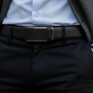 Automātiskā sprādze izgatavota no metāla sakausējuma ar matētu melnu virsmu. Minimālistisks, tīrs dizains bez liekiem elementiem piešķir jostai modernu, stabilu raksturu un lieliski sader gan ar klasisko, gan ikdienas stilu.
