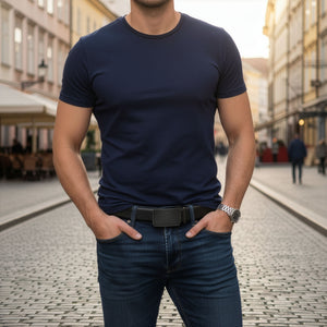Eleganta un moderna kastīte – josta iepakota melnā, mūsdienīga dizaina kastītē ar kontrastējošu logotipu. Šāda iepakošana uzsver produkta izcilību un padara to universālu, drošu dāvanu jebkuram vīrietim.