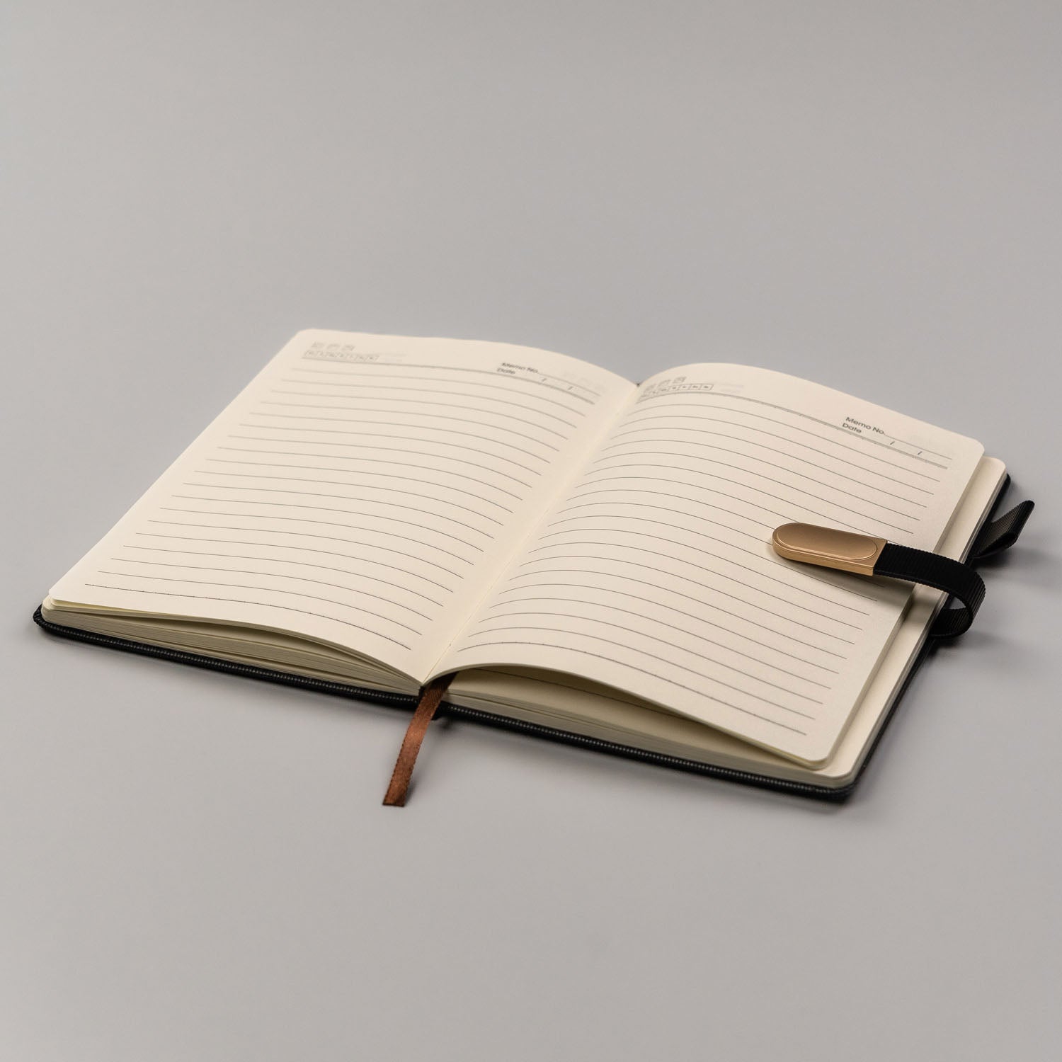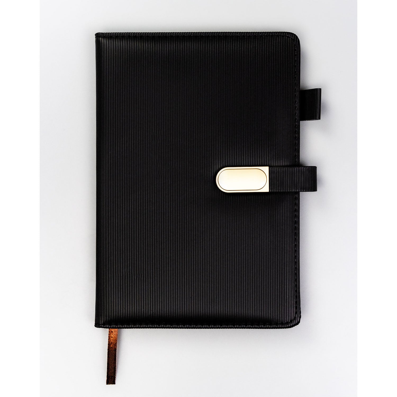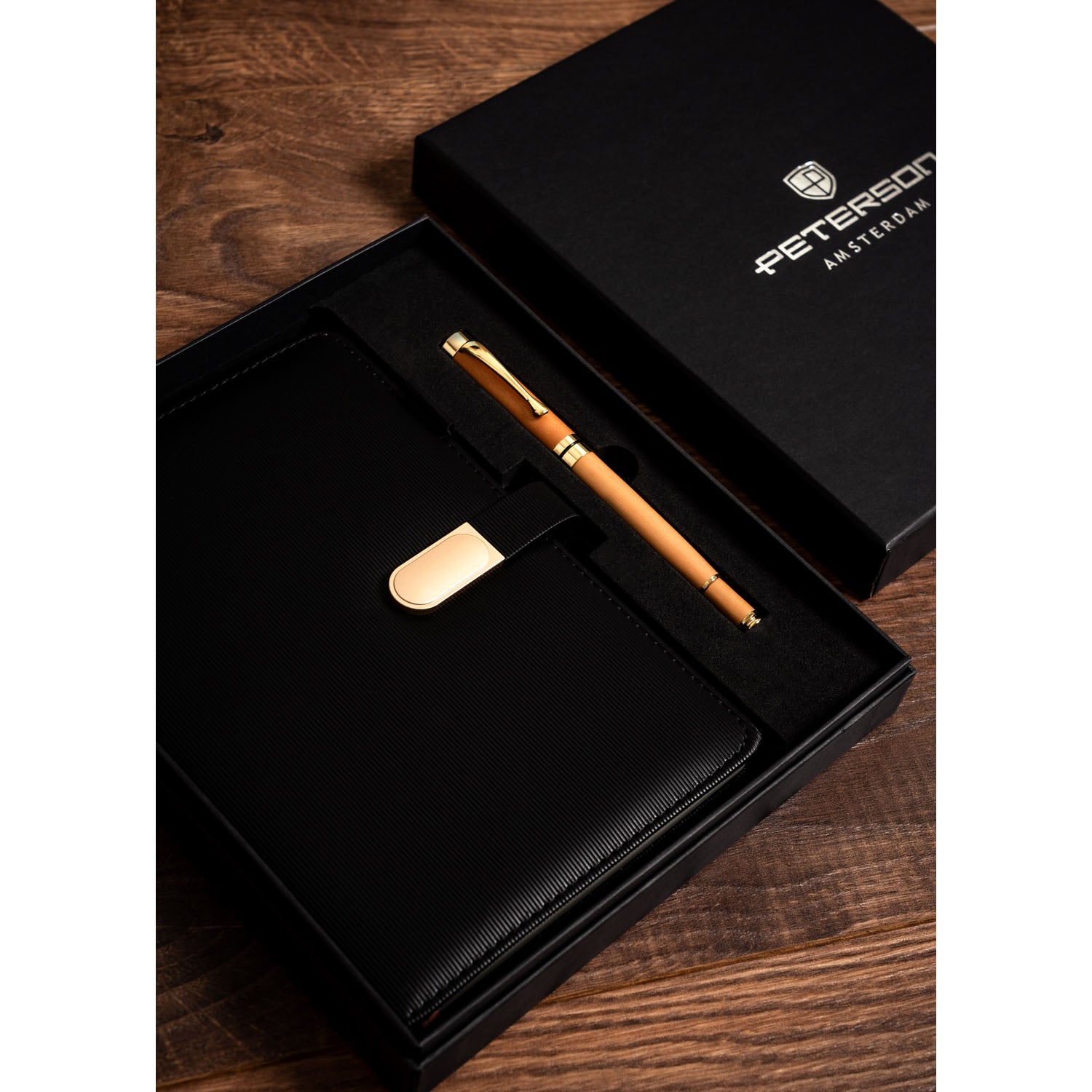 Dāvanu komplekts: melna eleganta A5 piezīmju grāmatiņa un pildspalva ar melnu serdi
