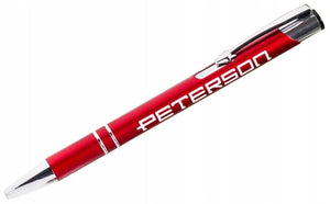 Metāla pildspalva ar iegravētu PETERSON® logotipu ir eleganta un uzticama. Tā ir lieliski piemērota ikdienas lietošanai.