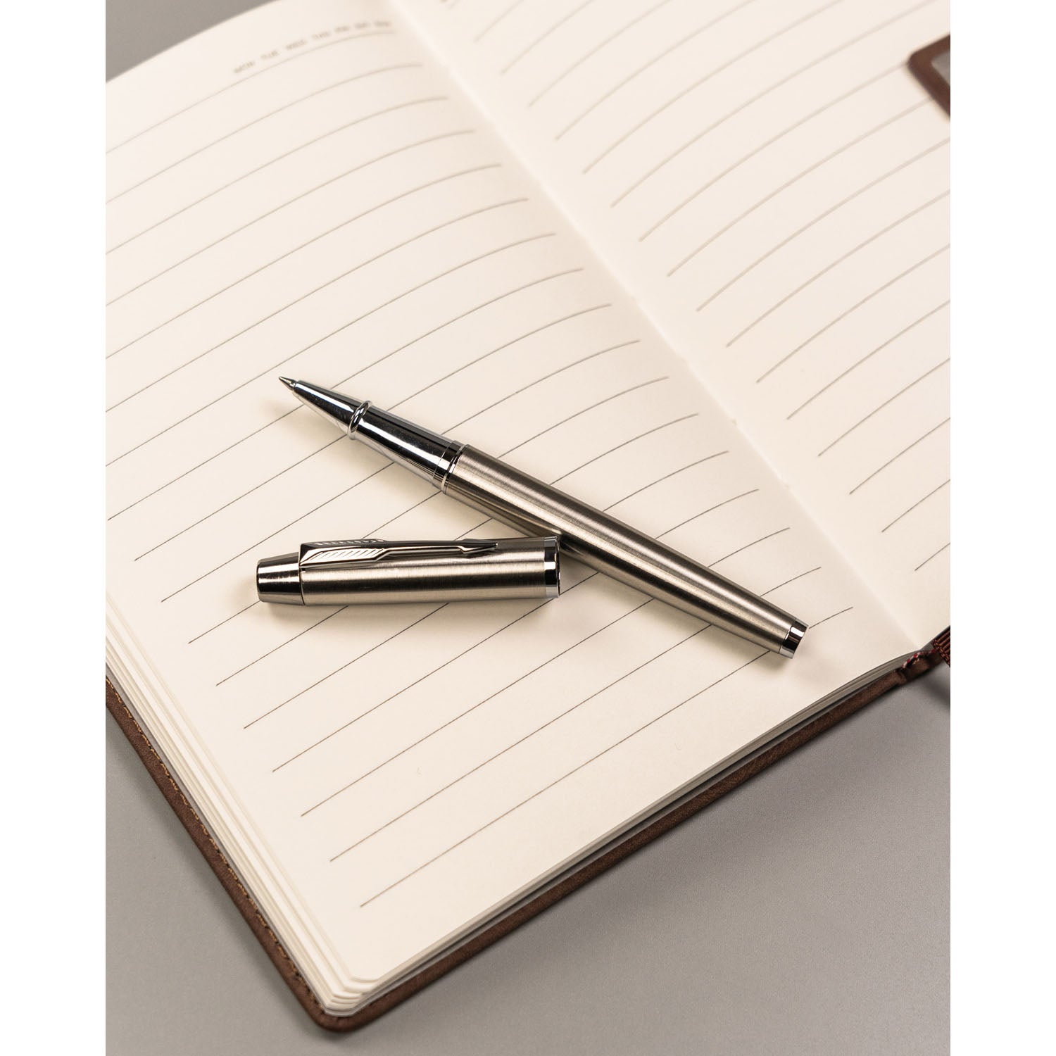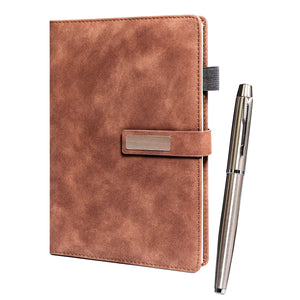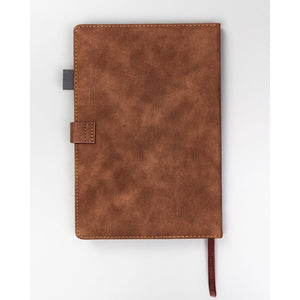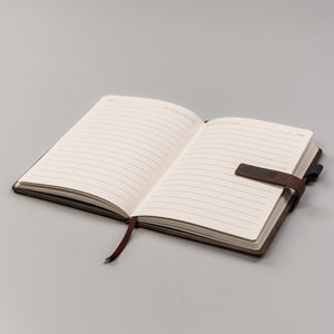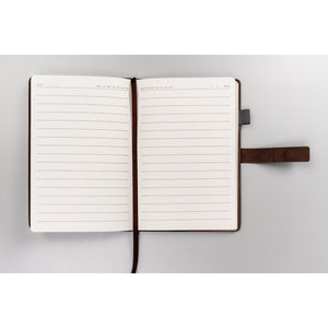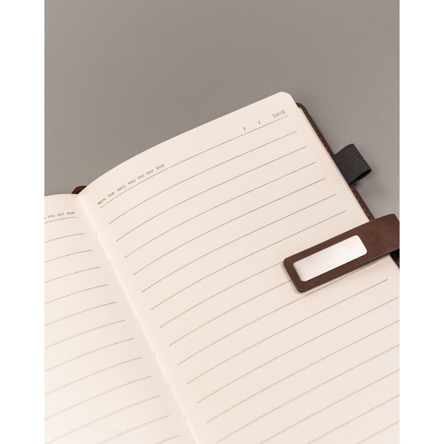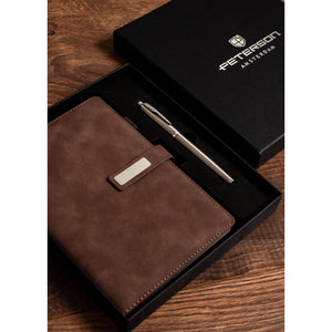 Dāvanu komplekts: brūna A5 līnijotu piezīmju grāmatiņa un melna pildspalva