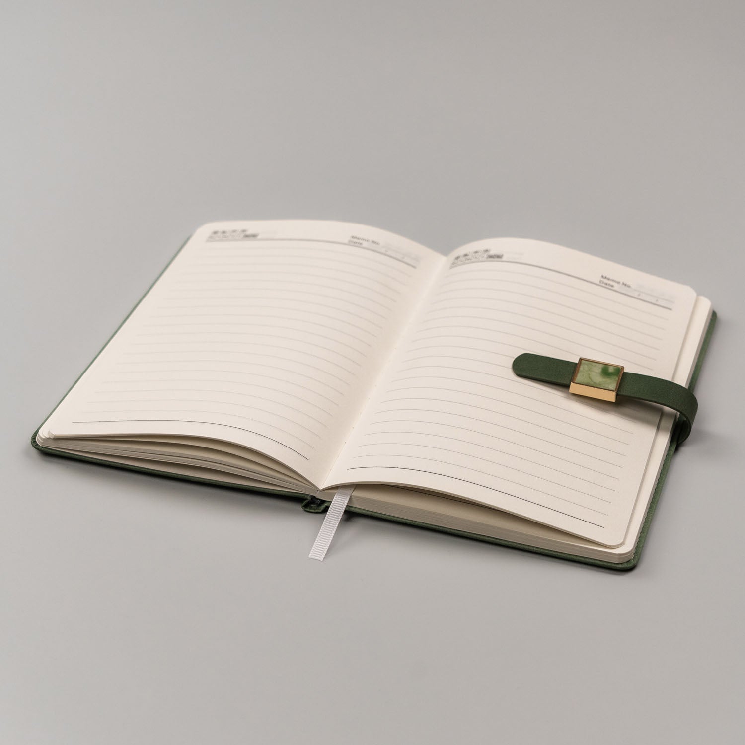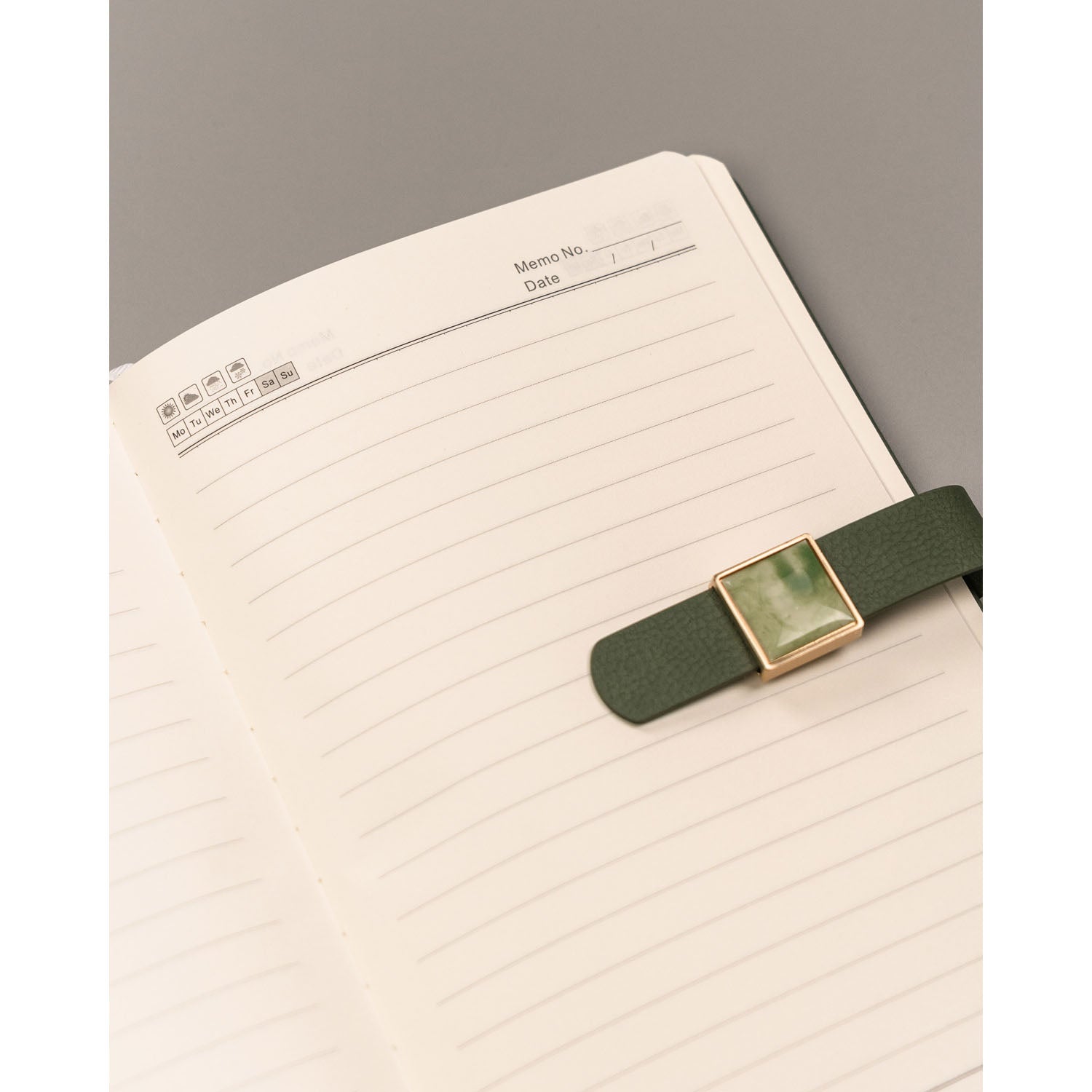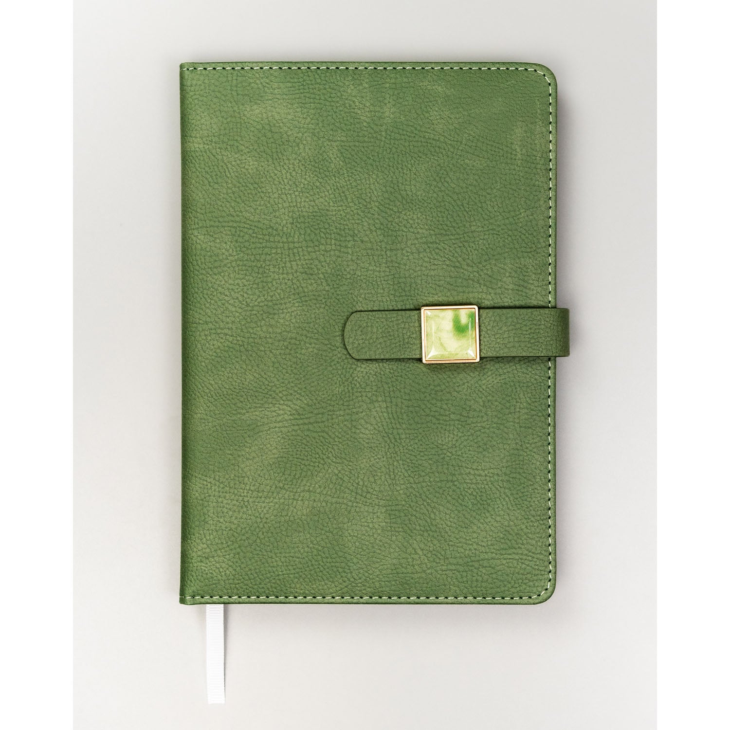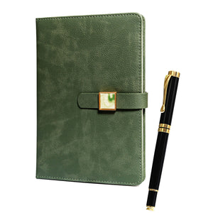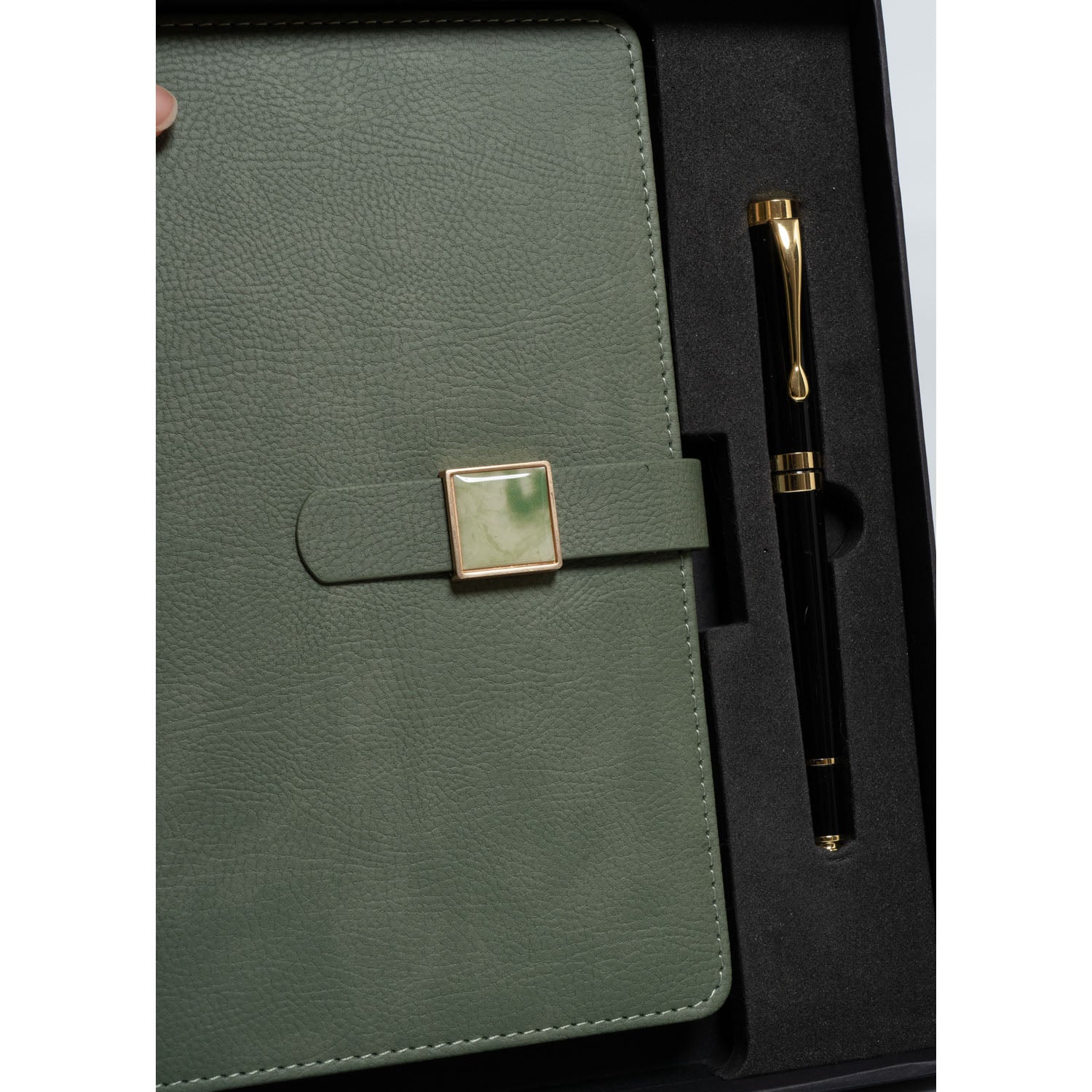 Dāvanu komplekts: zaļa piezīmju grāmatiņa ar magnētisko aizdari un melna pildspalva
