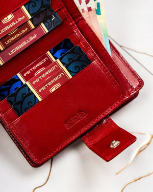 Šis elegantais sarkanais maks ir izgatavots no augstākās kvalitātes īstas ādas, nodrošinot izturību un stilu.