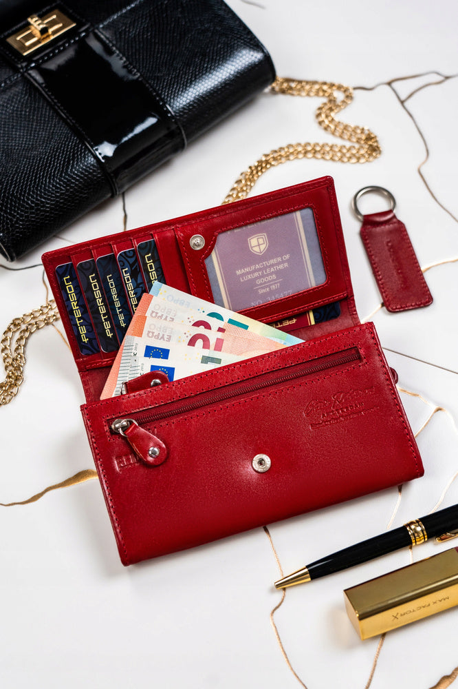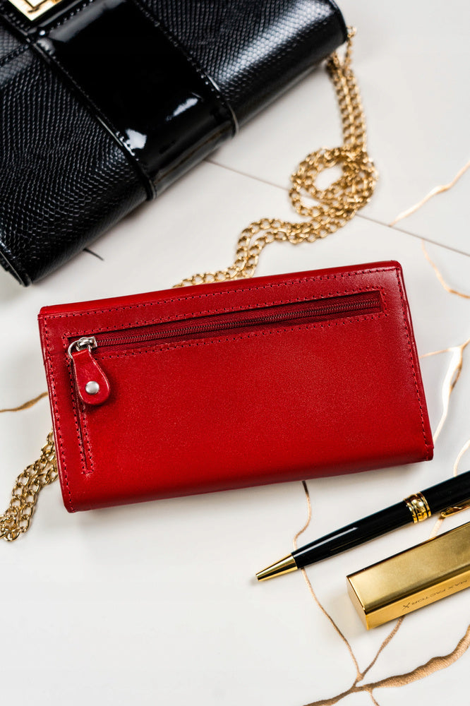 Šis elegantais sarkanais maks ir izgatavots no augstas kvalitātes īstas ādas, nodrošinot izturību un stilu.