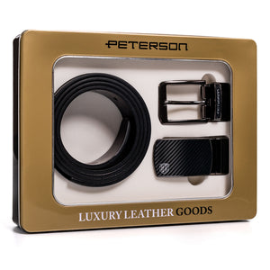 Dāvanu komplekts: vīriešu josta ar maināmu sprādzi Peterson F12