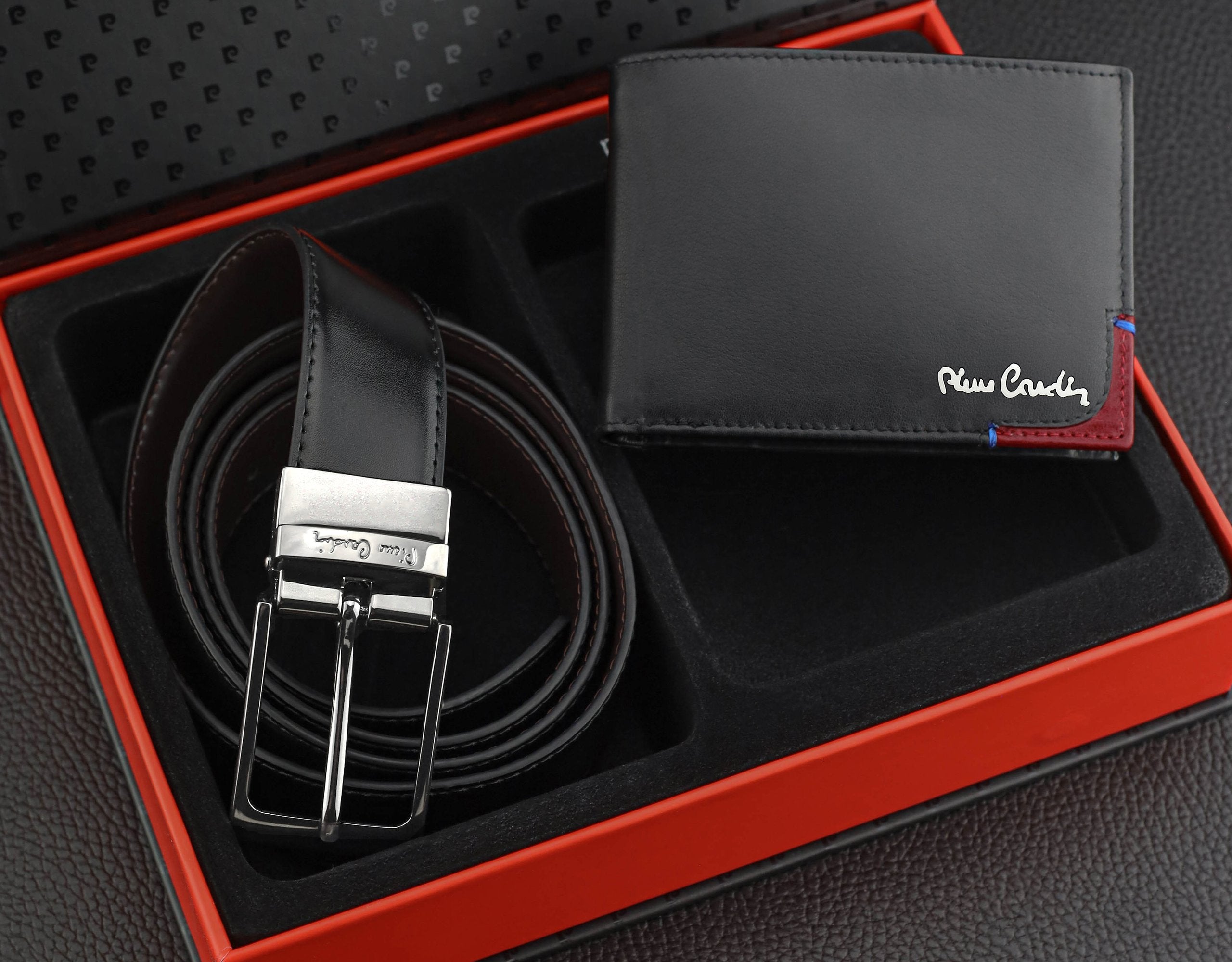 Pierre Cardin dāvanu komplekts: maks, divpusēja josta, kastīte, maciņš, sertifikāts