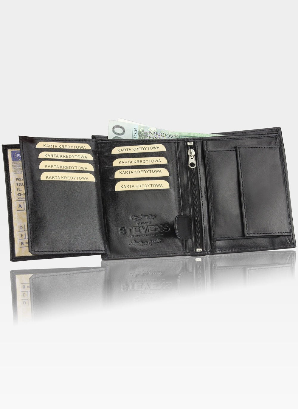 • 1 dokumentu nodalījums zem monētu kabatas