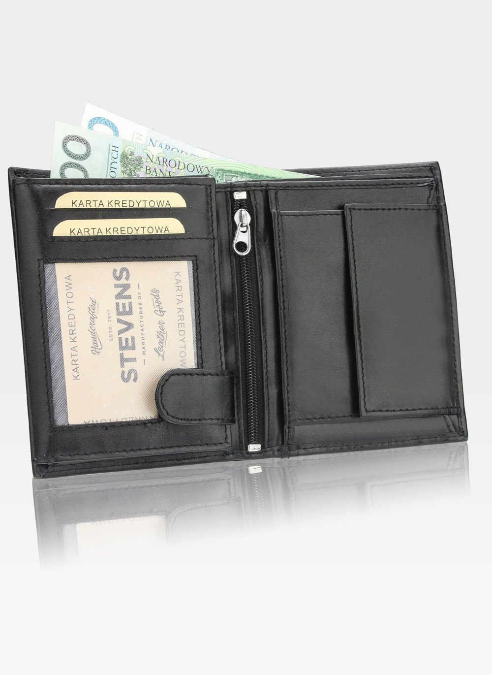 • 1 nodalījums ar rāvējslēdzēju maka vidū