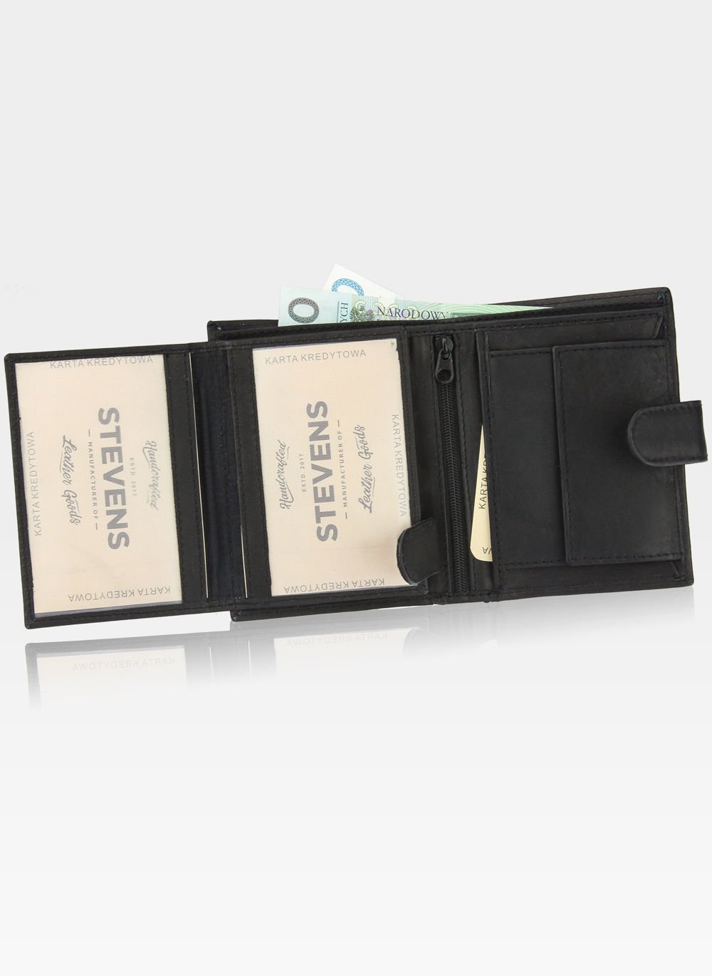 - Ietilpīgs dokumentu nodalījums zem monētu kabatas
