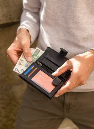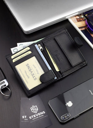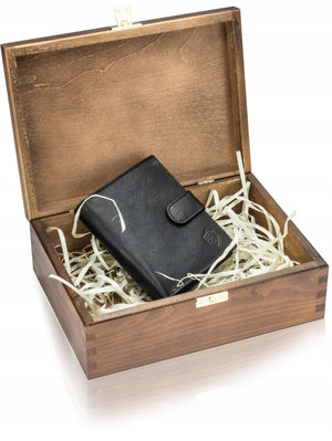 Vīriešu ādas maks koka kastītē Stevens 326A, melns