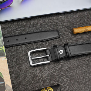 Elegants dāvanu komplekts vīriešiem - praktiska un stilīga dāvana jebkuram gadījumam. Komplektā ietilpst augstas kvalitātes īstas ādas maks, universāla vīriešu josta, melna dāvanu kastīte un grezns papīra dāvanu iesaiņojums.