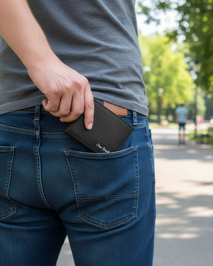 Makam ir RFID bloķēšanas slānis, kas aizsargā bezkontakta kartes no nevēlamas skenēšanas - praktiska izvēle ikdienas lietošanai un ceļojumiem.