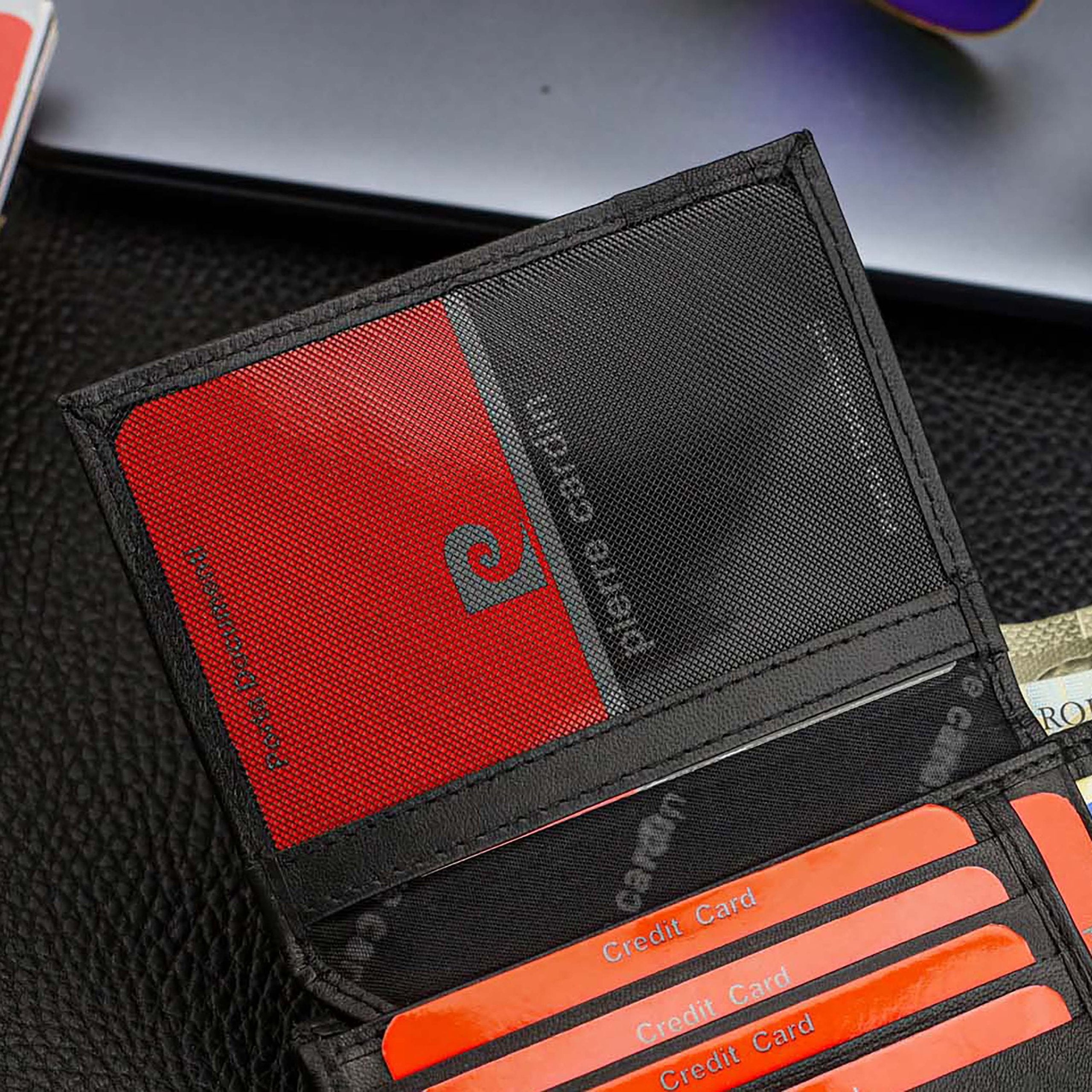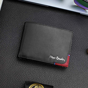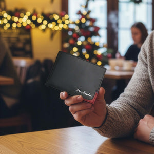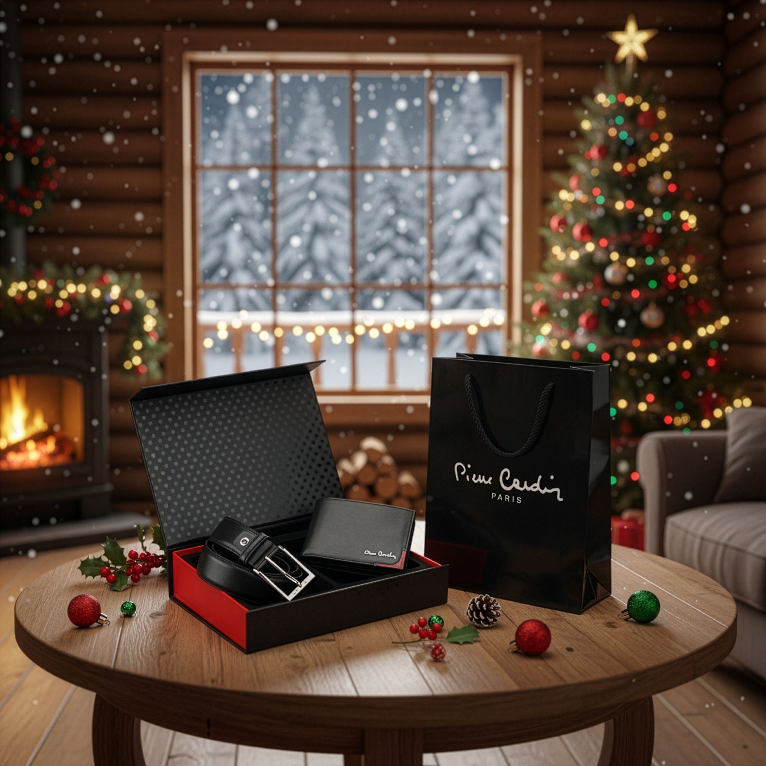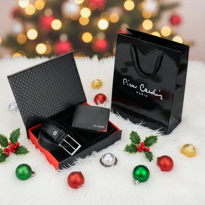 Vīriešu maks un josta Pierre Cardin kastītē, melna, īsta āda
