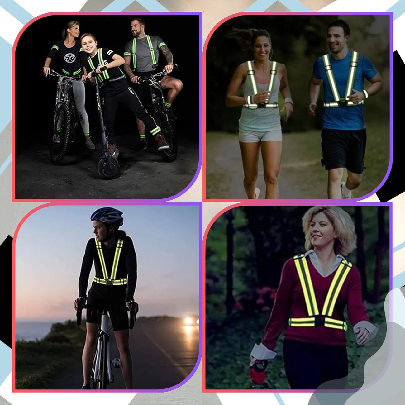 Produkta veids un mērķis: Atstarojošas drošības bikšturi, kas paredzēti, lai palielinātu redzamību un drošību tumsā.
