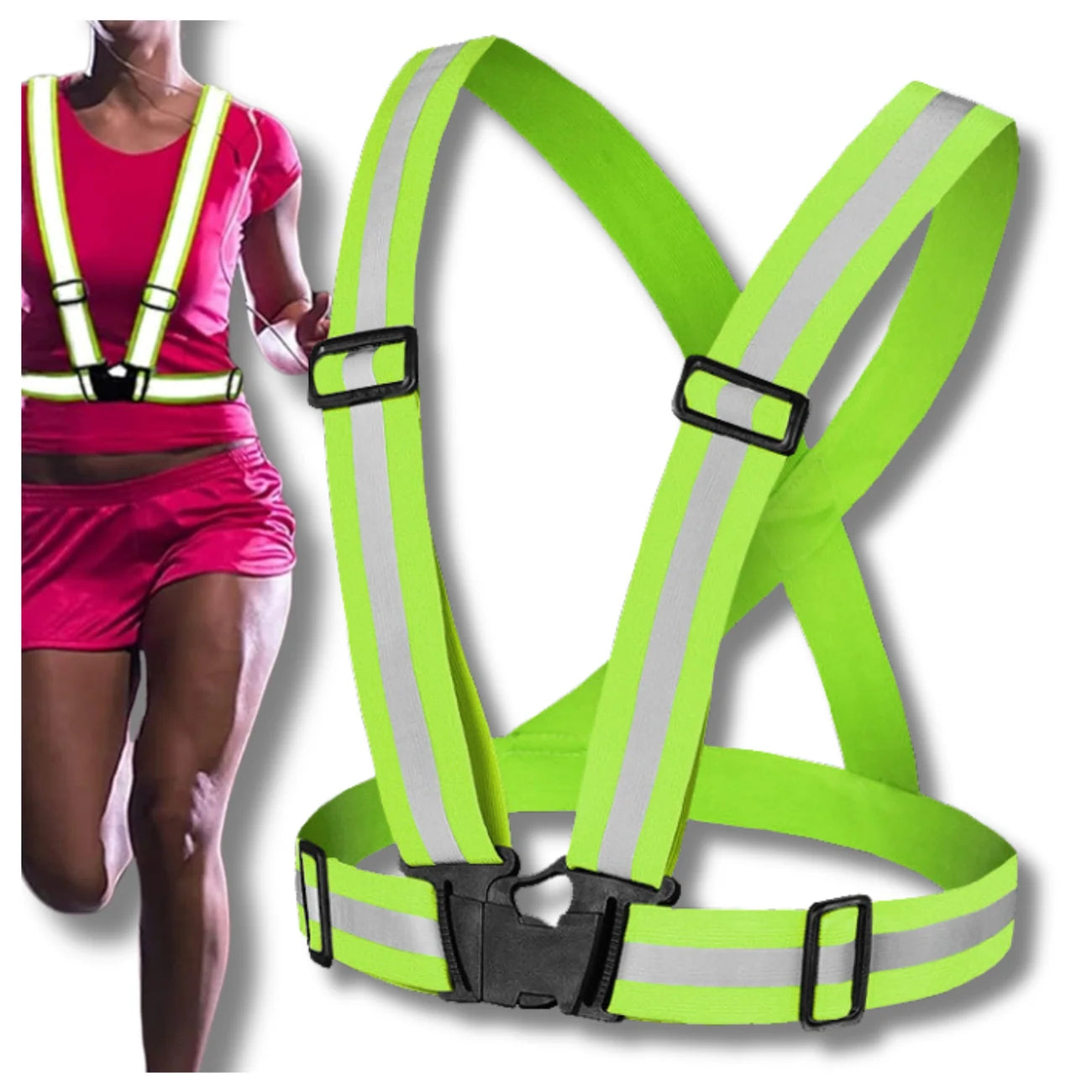 - Lietotāja priekšrocības: Ātra un ērta sprādzes aizdare. Ideāli piemērota vakara pastaigām, skriešanai, riteņbraukšanai vai darbam brīvā dabā, nodrošinot lielāku drošību uz ceļa.