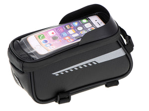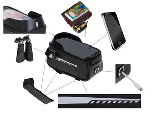 - Īpaša kabata tālrunim: Somai ir caurspīdīgs, ūdensnecaurlaidīgs logs, kas ļauj lietot tālruni braukšanas laikā. Tālrunis ir nostiprināts ar Velcro līplenti galvenajā kabatā.